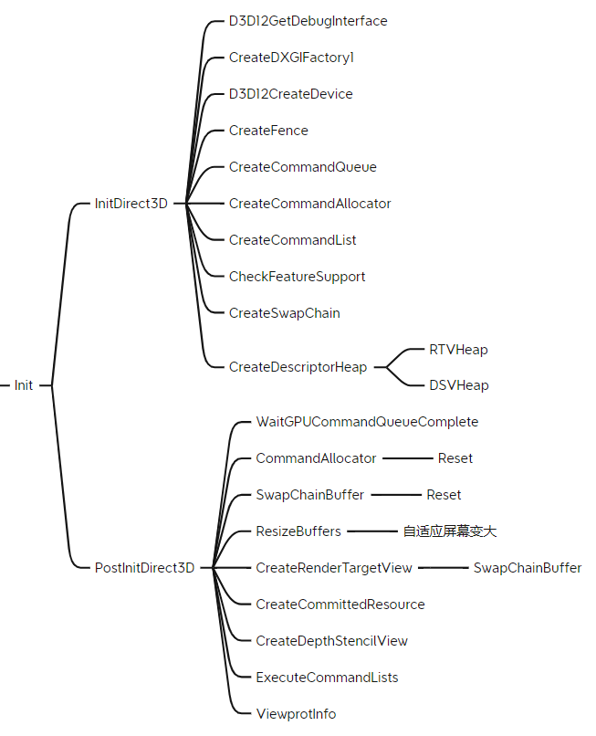 具体有创建驱动器和工厂(保证创建出驱动器),再用驱动去创建围栏(同步 CPU 和 GPU),命令队列,堆(存储视图,视图记录了数据在相应缓冲中的偏移地址和长度,是一种数据标识符)以及交换链。