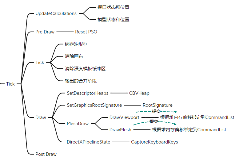 这是早期架构的渲染管线,因为引擎的交互还不完善,所以暂时不需要考虑动态的情况。
