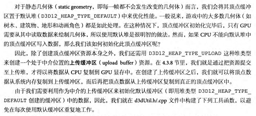 Vertex Buffer、Index Buffer 和 Constant Buffer 的创建与提交在第六章都有详细介绍,阅读之前一定要对描述符、视图、描述表以及描述堆等名词有足够的理解。