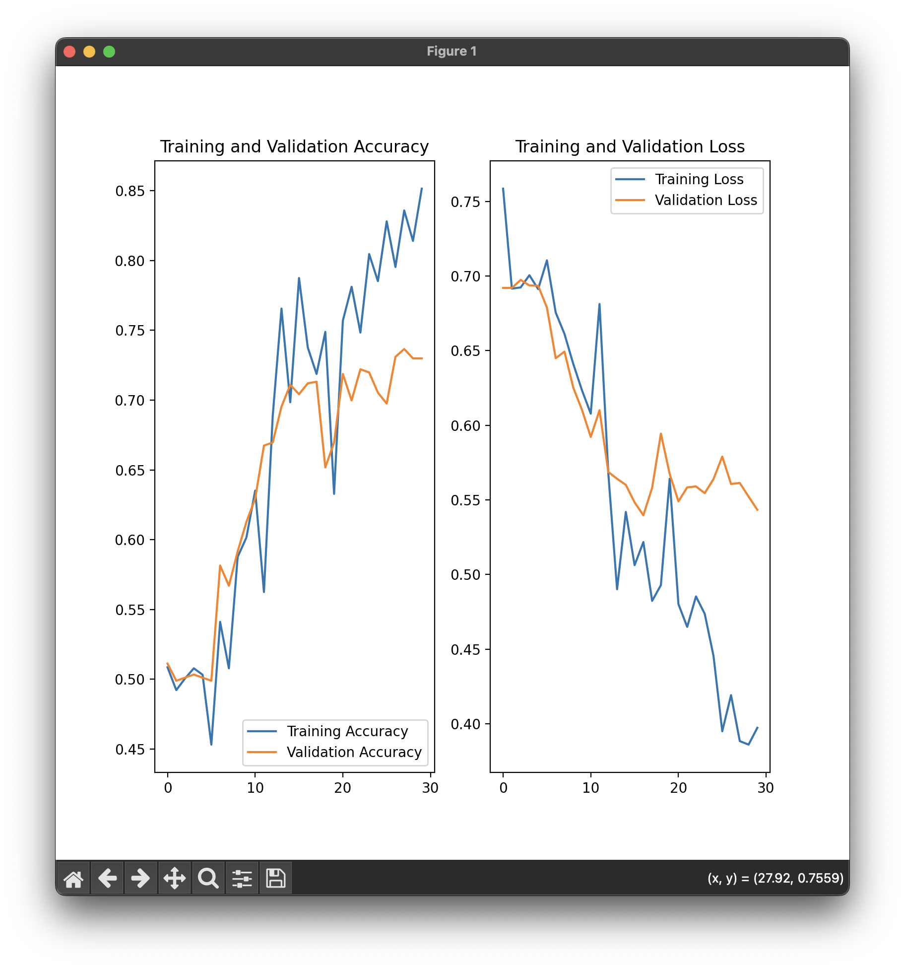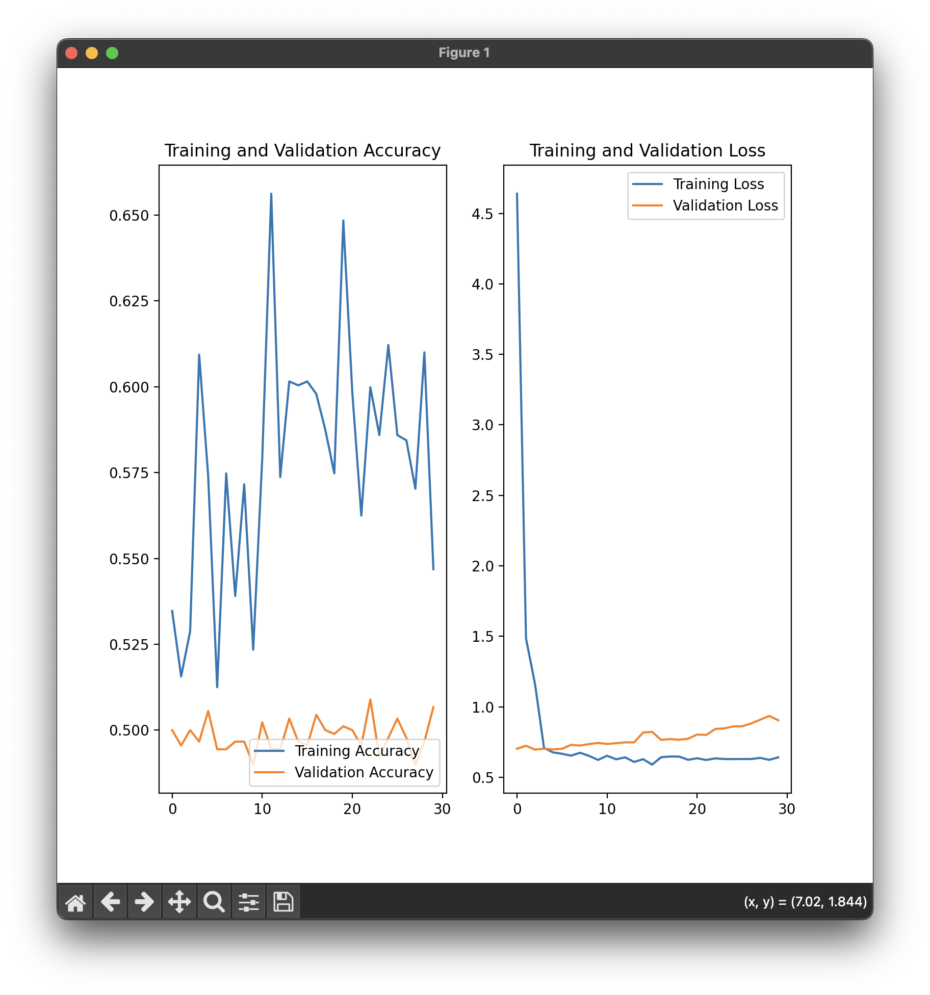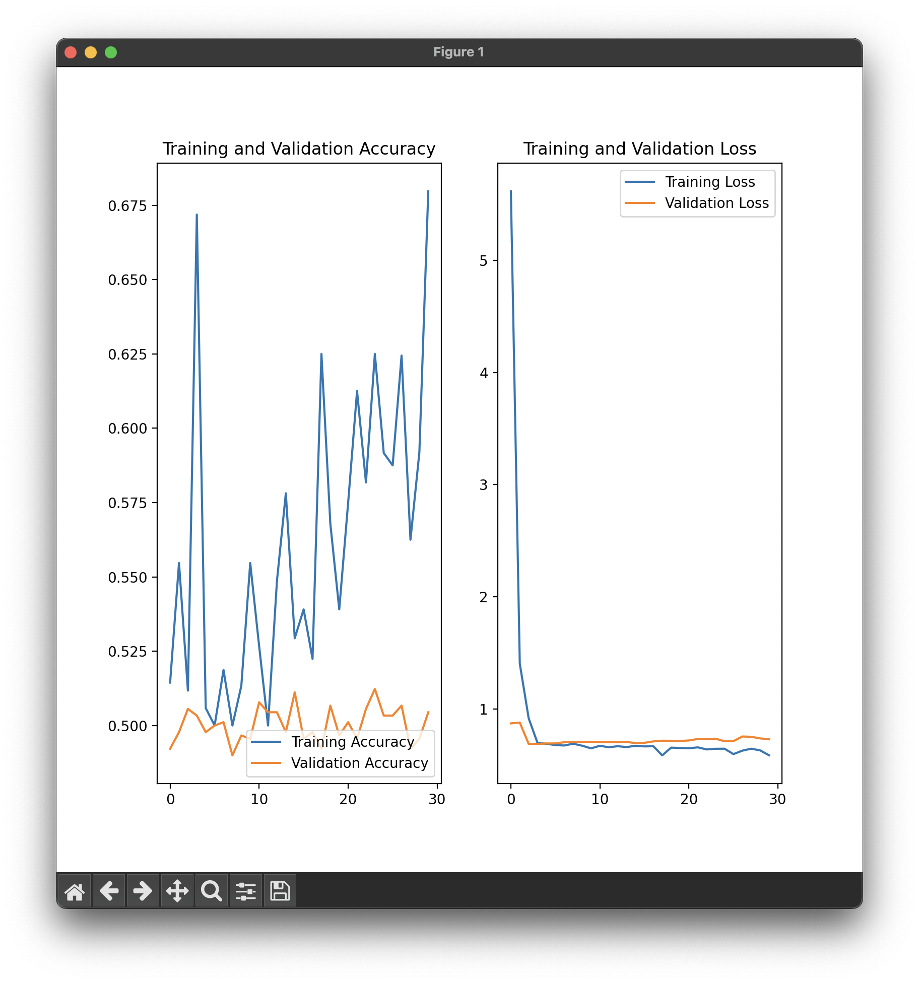 1 2 3 4 5 6 7 8 9 10 11 12 13 14 15 16 17 18 19 20 21 22 model = Sequential([ Conv2D(16 , 3 , padding='same' , input_shape=(IMG_HEIGHT, IMG_WIDTH ,3 )), BatchNormalization(), Activation('relu' ), MaxPooling2D(), Conv2D(32 , 3 , padding='same' ), BatchNormalization(), Activation('relu' ), MaxPooling2D(), Conv2D(64 , 3 , padding='same' ), BatchNormalization(), Activation('relu' ), MaxPooling2D(), Conv2D(128 , 3 , padding='same' ), BatchNormalization(), Activation('relu' ), MaxPooling2D(), Flatten(), Dense(512 , activation='relu' ), tf.keras.layers.Dropout(0.5 ), Dense(1 ) ])